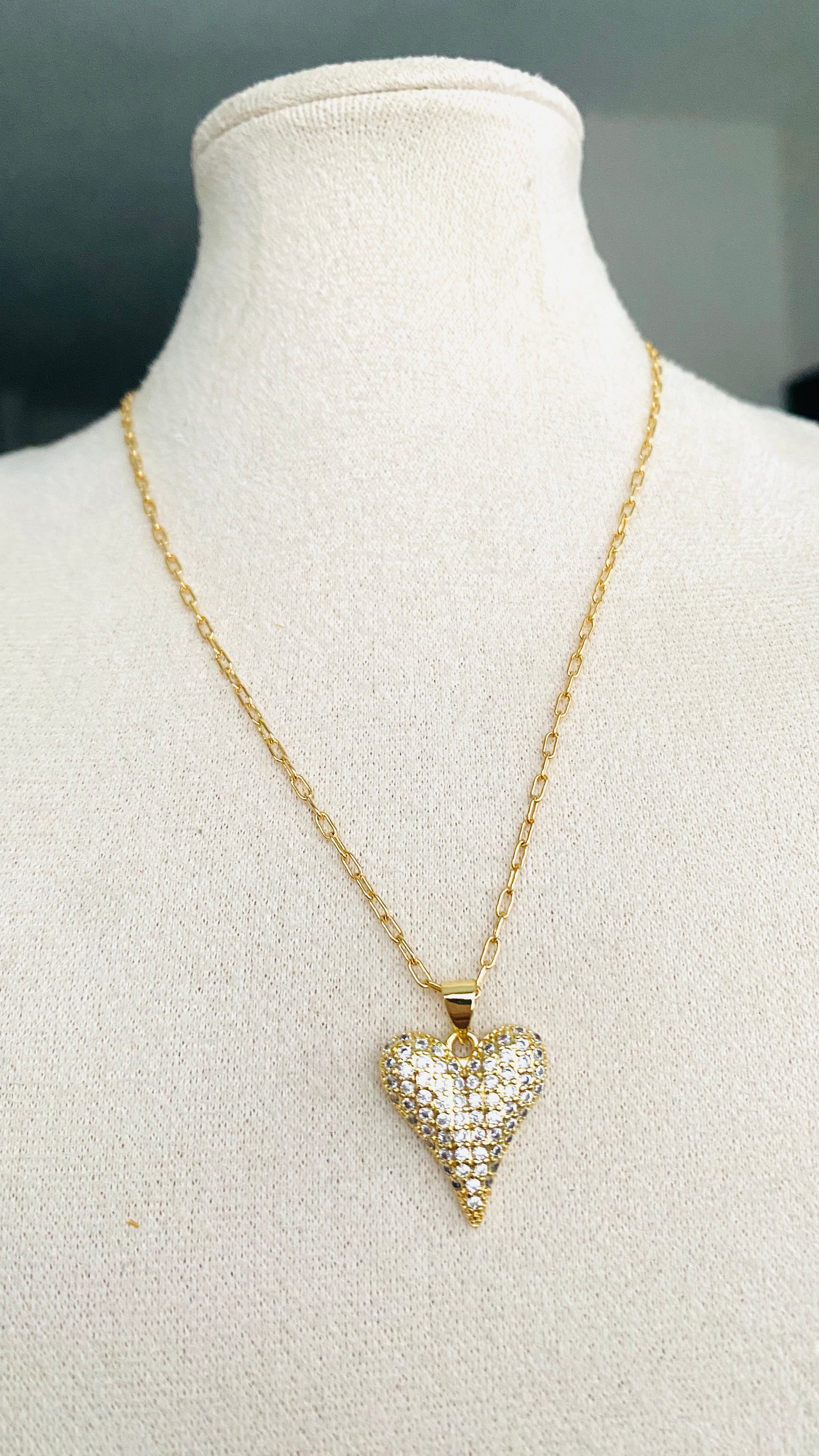 The Paper Clip chain features a gold-plated 18k design complemented by a zirconia heart pendant. Measuring 18 inches with an extension, this chain offers versatility while enhancing your style. Its unique combination of elegance and boldness makes it suitable for a variety of occasions.