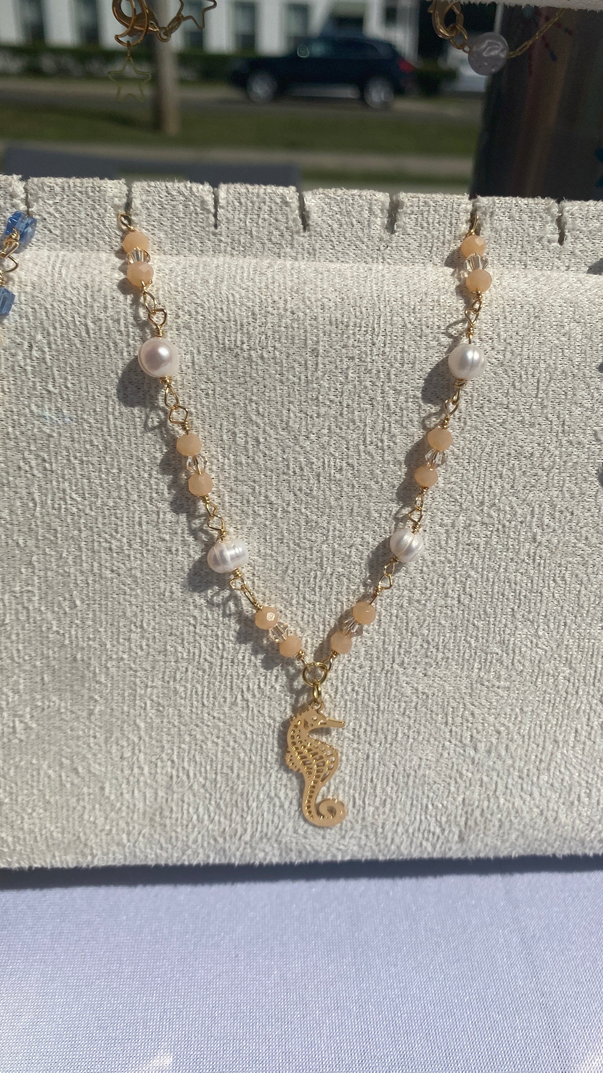 Stand out with our Seahorse Linked Chain! This gorgeous necklace features a gold plated 18k wire and a charming seahorse charm adorned with glass beads. Elevate any outfit with this classy and unique piece. Be sure to turn heads and make a statement with this beautiful accessory!